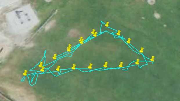 Las imágenes que ves arriba son sólo algunos de los caminos que grabé. Cuando llego a cinco metros de un waypoint, el piloto automático del interruptor y comience a navegar a la siguiente. Hice un montón de cambios de menor importancia al código durante las pruebas.