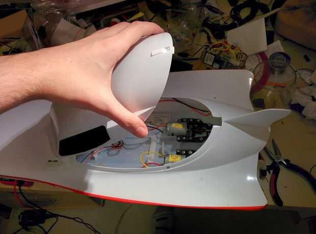 Los dos motores tenían un intrincado sistema de enfriamiento: un propulsor muy ruidoso que soplaba aire de los motores. También fueron disociación condensadores motores así. Estas cosas trabajaron para mi ventaja. Había también un pequeño interruptor en la parte superior del barco. No he encontrado un buen uso de ella, bastante todavía.