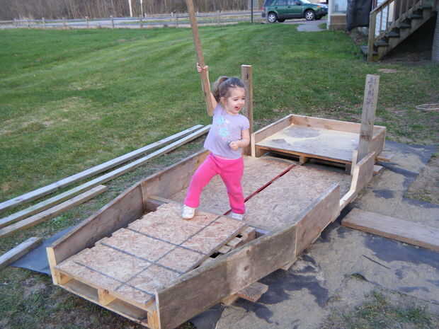 Empecé un trabajo en una nueva ciudad, para ayudar con la transición le prometí a mis hijos que yo les construiré una casita de pirata. Le dije a mi esposa que le construyo una plataforma de 5 pies con una escalera y tobogán. Cosas se extendieron ráp