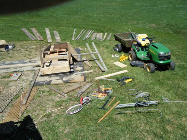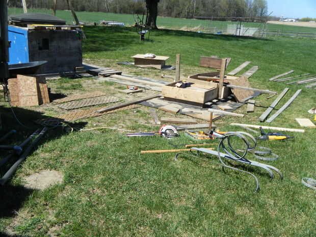 Aquí está una vista de algunas de las cosas que recopilé para este proyecto. Como puedes ver hay un montón de madera alabeada y algunas cosas raras de metal rizados. A veces vale la pena coleccionar cosas extrañas. Quisiera recoger como mucho del material que tengo disponible para proyectos como este y ponen hacia fuera alrededor mientras estoy trabajando. Nunca falla que encontraré el uso perfecto para una pieza realmente extraña/deformado si puedo verlo que estoy construyendo. Siempre mire su madera alabeada y ver lo que quiere ser, no lo que quieres hacer.