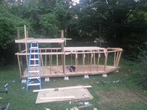 Esto es eran comenzó a tener problemas, yo pude han dejado aquí con la plataforma de 5 pies como prometido, hey ¿por qué parar ahora? El casco del barco está en ángulo hacia fuera de 1 pie a cada lado, 6 pies de ancho en la parte inferior, 8 pies de ancho en la parte superior.