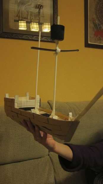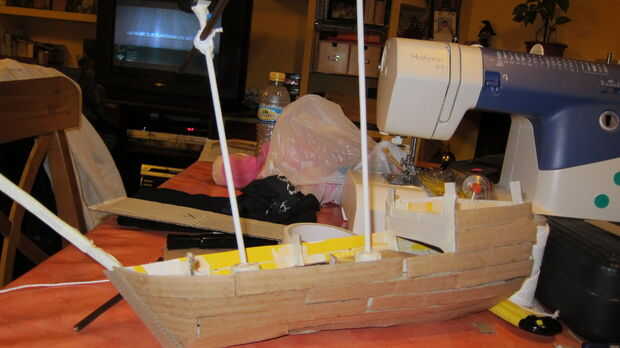 Esto no es tanto una instrucción, sino más bien de una fuente de inspiración, miré a mi alrededor para que maneras de construir un barco de madera y cartón y en la final salió con esto, ciertamente puede utilizar alguna decoración más pero mi hijo er