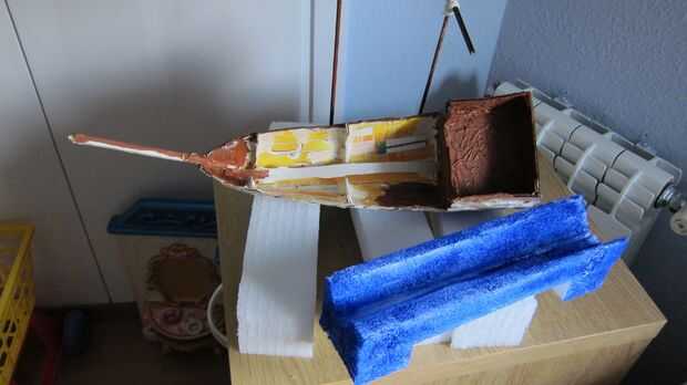 Esto no es tanto una instrucción, sino más bien de una fuente de inspiración, miré a mi alrededor para que maneras de construir un barco de madera y cartón y en la final salió con esto, ciertamente puede utilizar alguna decoración más pero mi hijo er