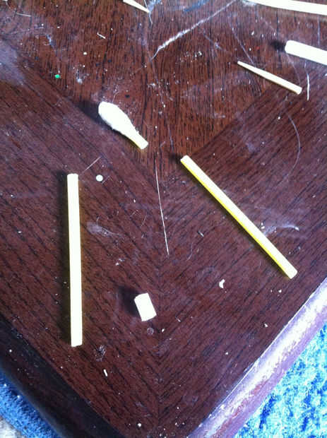 el mástil está hecho de dos puntas Q pegadas y pieza que es ligeramente más grande para fijar el mástil en