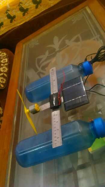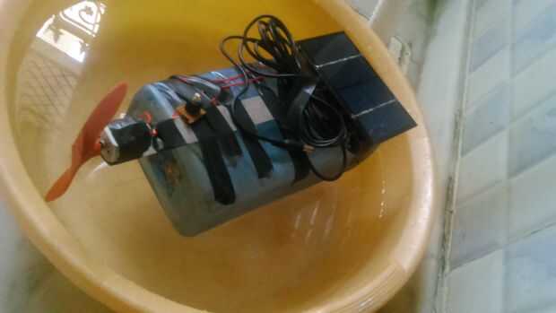 Los fabricantes: Deepak, Ranjan gowda y Rohith gowda.Ubicación: Banjarapalya E4D MakerspaceHicimos este barco solar en centro de Banjarapalya E4D noche construir con Gadgets de perro marrón.Material:1. solar2. 2 motar de juguete3. 2 fan4. 4 botella5.