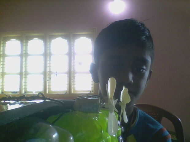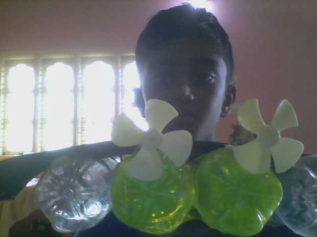 Tomar el ventilador y fijar el motor de juguete como se muestra en la imagen.