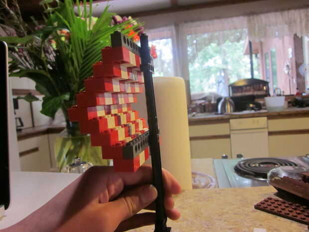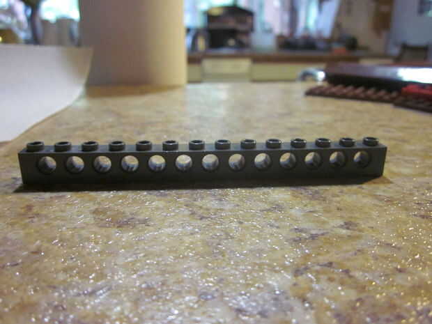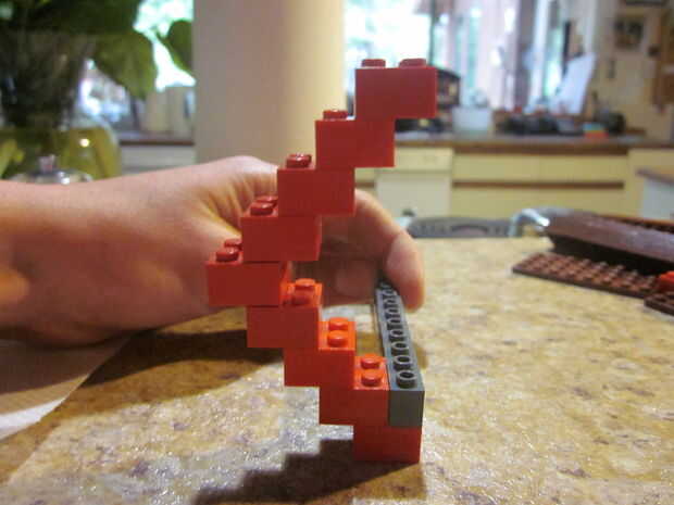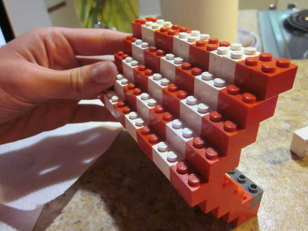 En primer lugar obtendrá 1 ladrillo de 1 x 14 color gris oscuro con "agujeros". Siguiente consigue el 9 rojo 2 x 2 y empezar a apilarlos en el gris oscuro 1 x 14 "con agujeros" como en la foto. Después de acabado que tomar 9 blanco 2 x 2 y hacer lo mismo. Continuar este patrón hasta llegar al final del ladrillo gris oscuro 1 x 14 "con agujeros". A continuación, agregue otro ladrillo de 1 x 14 gris oscuro con "agujeros", por encima de la 2x2s 9 como en la imagen. A continuación inserte 1 tina negro pequeño en el orificio central de tanto ladrillo gris oscuro 1 x 14 "con agujeros". Coloque la vela entera en el pilar negro como en la imagen luego fije el poste negro barco luego al barco.