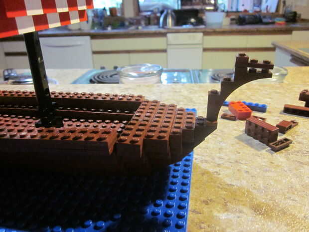 Primero poner la base de la embarcación en medio de la placa base. Añadir a continuación la parte delantera de la embarcación frente a la base de la embarcación. Luego añadir la parte de atrás del barco a la parte posterior de la base de la embarcación.