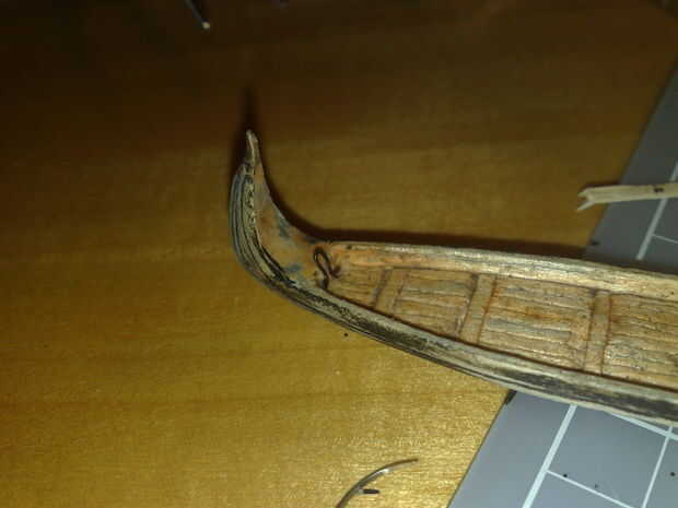 Para casco terminado para ser tallado, cubierto con barniz para madera. Como puede ver hay tablones 3D en casco y cubierta, para mejorar contraste pintado casco en negro con pintura acrílica de hobby y luego lijar suavemente para quitar la pintura de la superficie, pero deje en surcos.