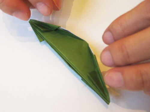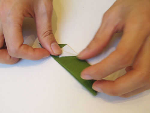Hacer dos pliegues diagonales desde los bordes a la mitad en cada lado.