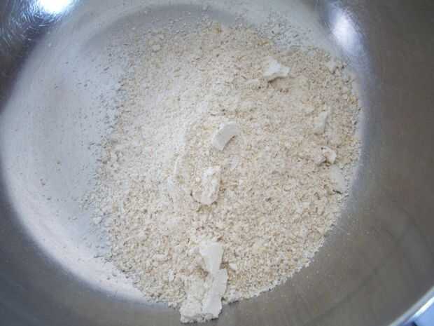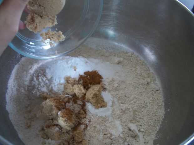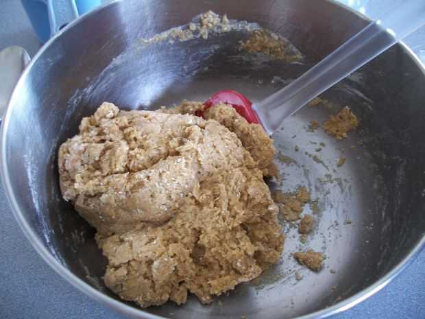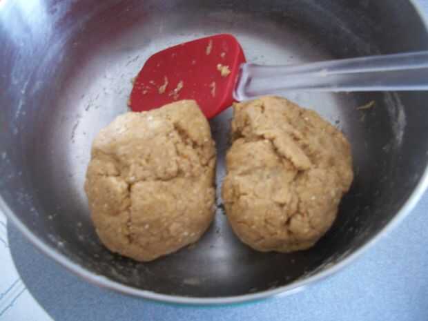 Paso 2: Mezclar mantequilla derretida, huevo, puré de manzana y agua hasta que se forma una masa. Dividir la masa en 2 porciones iguales.