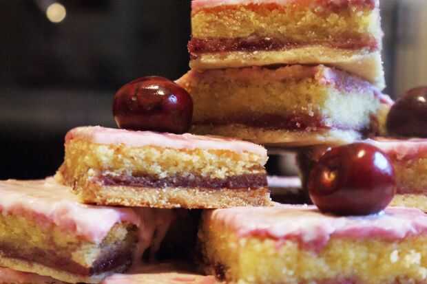 esta torta de cereza y almendras es uno de los favoritos de nuestros amigos de Colegio sobrio y borracho. El dulce sabor de almendra complementa las guindas ácidas, creando un interesante giro en el clásico pastel de cereza. La decoración de la tar