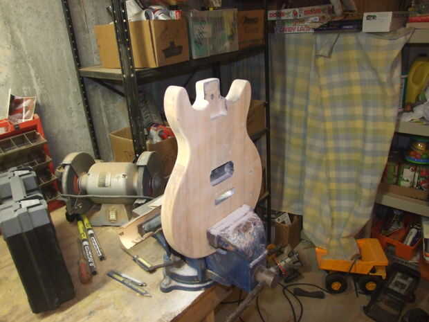 Este instructable le mostrará cómo construir un perno en cuello, guitarra eléctrica semi-hollowbody, en la forma de las guitarras de Fender Thinline y similares. El cuerpo es similar a una Jazzmaster o Jaguar, con una tapa plana, pero los pasos sería