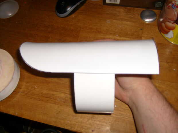 Con el fin de dar forma a la cubierta superior de la pistola me calienta el plástico y había moldeado sobre un bote de Nesquik. El diámetro de la curva es de 5''.