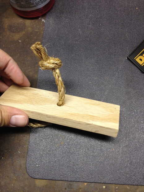 Simplemente perforar un agujero, deslizarse la cuerda a través y atar no en ambos extremos.
