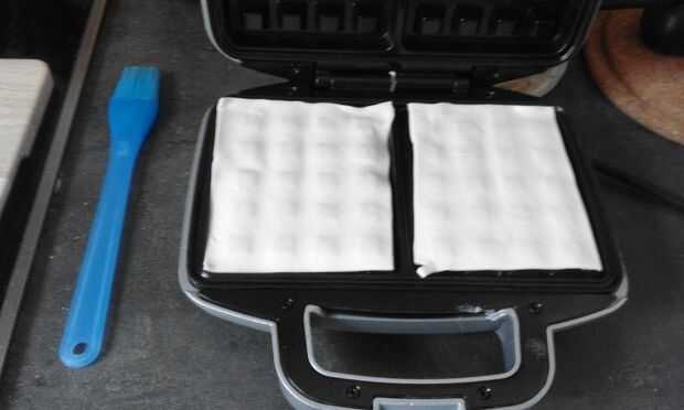 Poner aceite en la plancha de gofres. Buscar en el manual de su plancha, podría, bajo ciertas circunstancias, no necesita hacer eso.