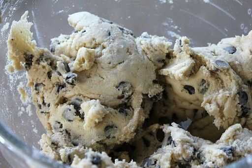 Cuando se mezcla la masa, doblar a mano en las dos tazas de chispas de chocolate y se preparan para poner en algunas galletas forrada de papel de pergamino.