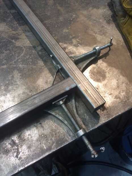 Después de practicar, ya estás listo para iniciar la barra de la soldadura. Utilizar abrazaderas de ángulo recto para asegurarse de que el acero se alinean suave y lacio.