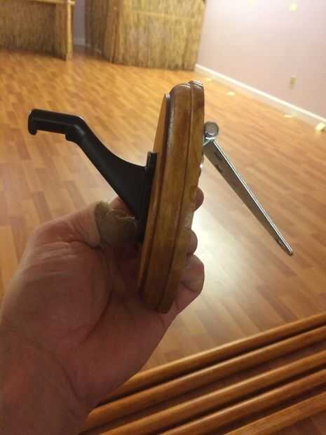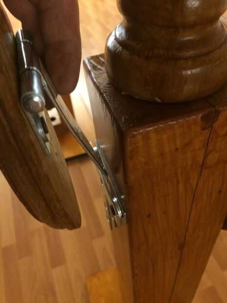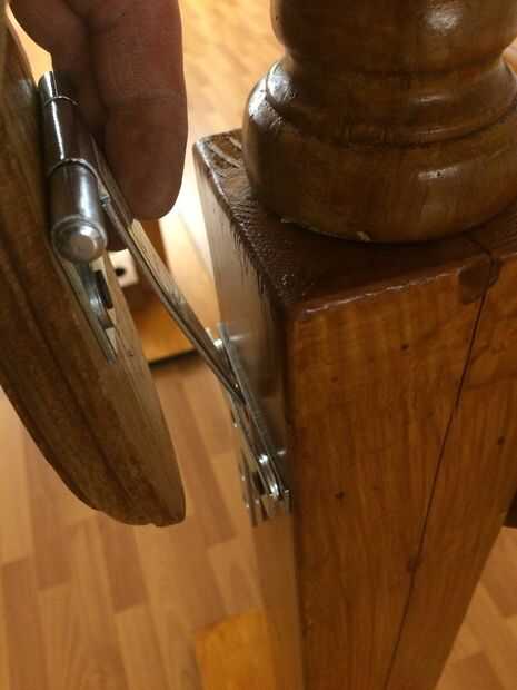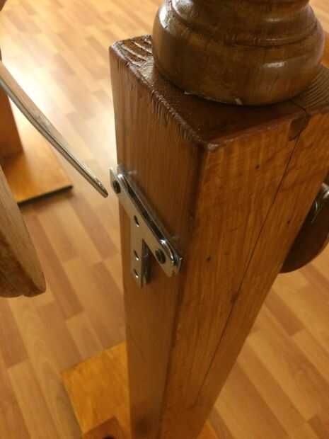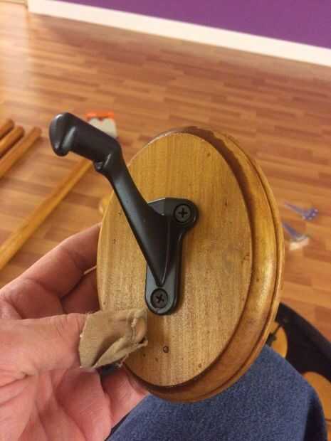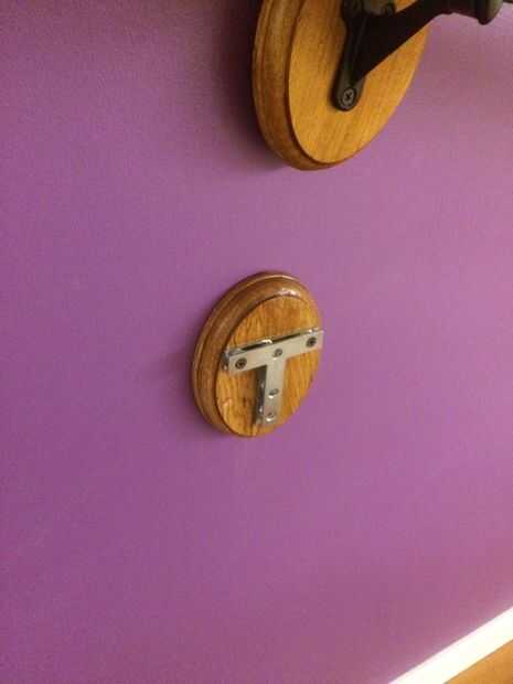 El "receptáculo" consiste en dos T-placas separadas por las arandelas como espaciadores para acomodar el espesor de la bisagra. Si montado en vertical 4 x 4, o en una roseta montada en la pared, va a recibir el artilugio de soporte de la bisagra que sujeta la barra.