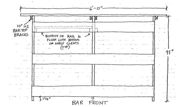 Como se puede ver en las fotos y bocetos quería este bar abierto y aparecen como una valla de barandas separadas desde la parte delantera. Principalmente he elegido este enfoque para dar arañas menos escondites. Usando menos madera ha causado un problema. Si está de pie en la barra lateral y tire de la barra superior se inclinará hacia adelante ya que la base no pesa tanto como la mayoría de los bares. He venido para arriba con algunas opciones para remediar esto; peso de algún tipo en el estante inferior o golpeadores entre las piernas y el suelo debajo de la barra superior. Esperemos que al final de este "ible" habrá descubierto una solución.