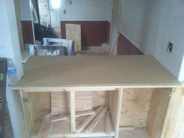 El acero de barras que routered para caber el marco para que fueran al ras con la madera existente, por lo que cuando se puso la capa de base para la mesa es una superficie plana. Solía aglomerado como capa base para la mesa sentarse. Al instante me arrepentí de que mover porque el tablero de partícula no tiene ninguna fuerza... y compró una hoja de OSB y terminaron haciendo una base de dos capas que era más feliz con.
