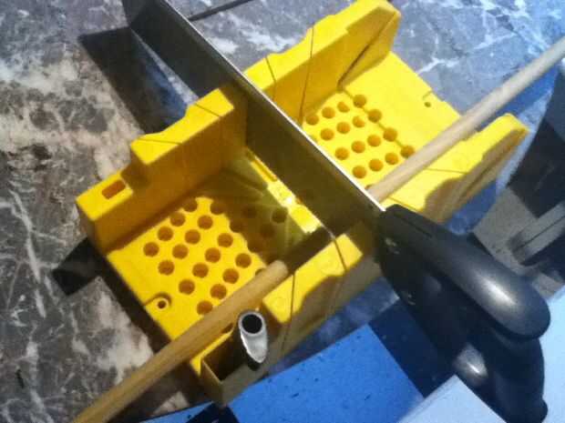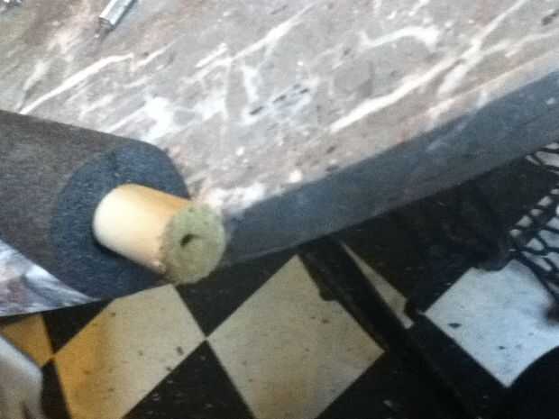 2. perforar agujeros en cada extremo del pasador. Cometí el error de poner en el aislamiento de la pipa antes de taladrar los orificios piloto. el aislamiento no se pega a la espiga por lo que sólo hizo girar cuando intenté perforarlo.