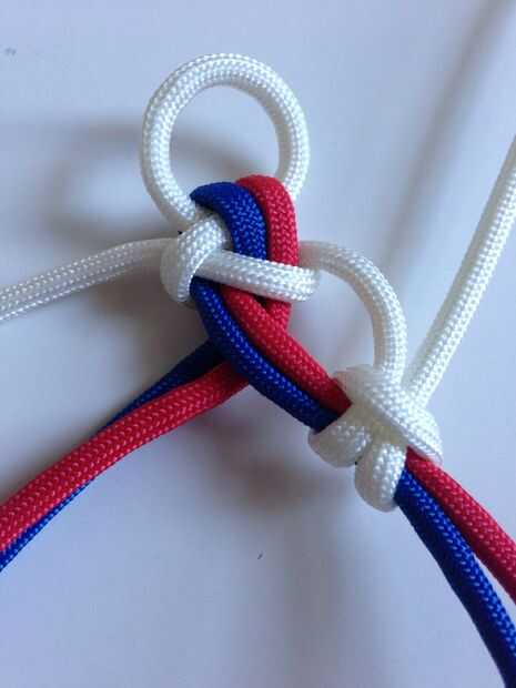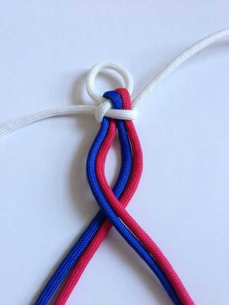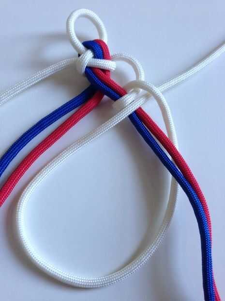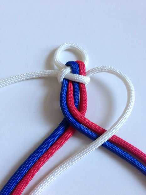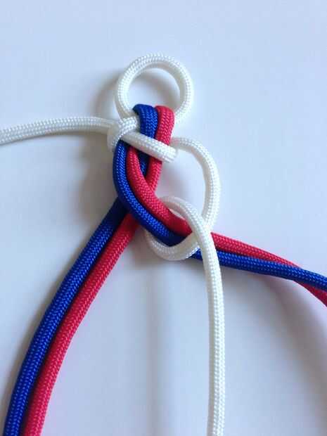 Tome la cuerda derecha de color blanco y poner sobre las dos cuerdas a la derecha.