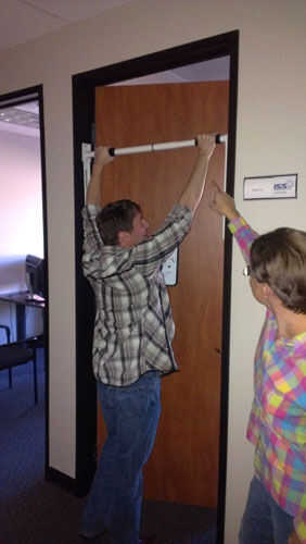 esta es una manera de bajo costo para instalar una barra de dominadas en el marco de una puerta estándar. Esto pondrá los agujeros en la madera, así que tienes que estar bien con la instalación permanente o un poco de patchwork cuando quiera quitarlo