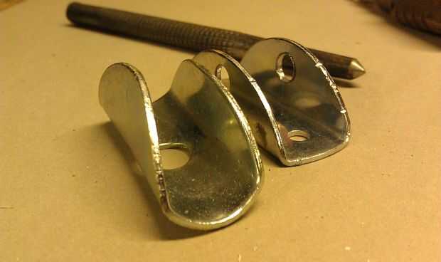 Un freno de doblez del metal de hoja se podía utilizar con material más ligero, como el aluminio de calibre 20, pero el peso de las arandelas de defensa de acero (12 o 16-calibre?) sería demasiado para cualquier freno que he usado alguna vez. Un freno de la prensa podría trabajar, pero creo que los espacios en blanco sería duros sostener con seguridad. Supongo que si tiene un freno de la prensa, usted probablemente no sería en Instructables aunque...