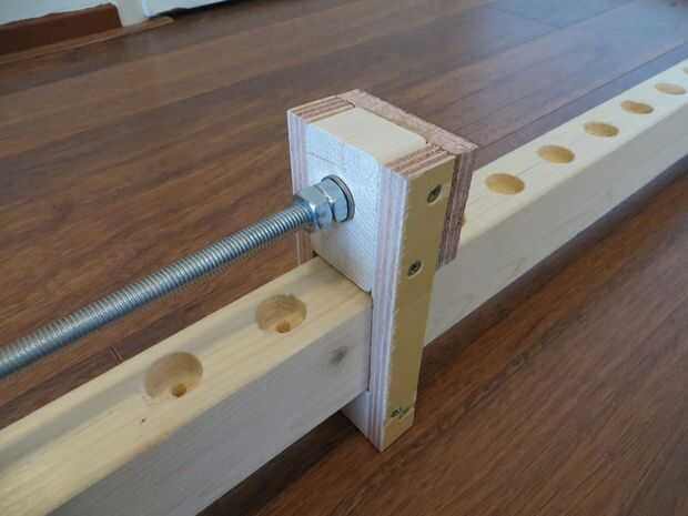 Antes nos montar la barra, necesitamos perforar un orificio en la varilla roscada y la tuerca pueden atravesar. Para ello en la misma posición del bloque como hiciste el extremo fijo. También asegúrese de que la gran parte del agujero es lo suficientemente profundo para casa una tuerca amplia en.