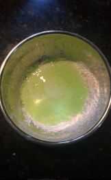 2. cuando el almidón de maíz y Champú/jabón es totalmente mezclado, puede Agregar el colorante de alimentos. (Esto es donde puede utilizar su segundo tazón de fuente. Usted puede hacer dos colores, por ejemplo: blanco y azul en mi caso o rojo y amarillo! Todo es posible).