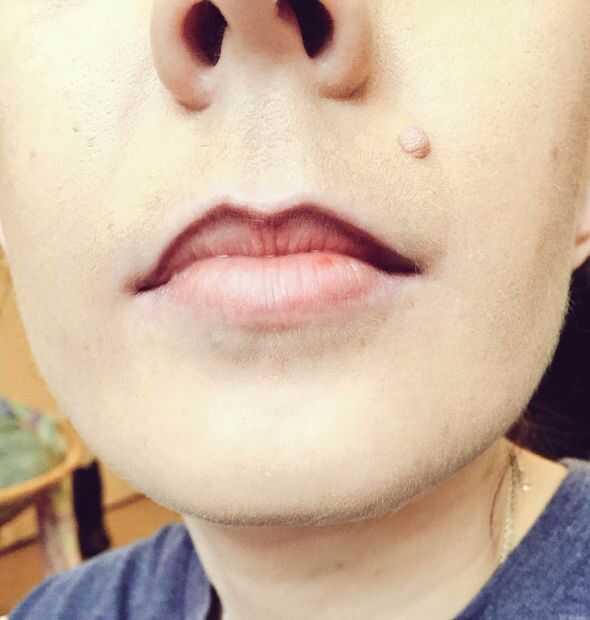 23. deje la parte superior la mitad del labio inferior sin tocar por el trazador de líneas. (Foto 3)
