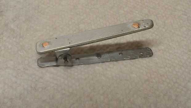 Esta barra de lazo es muy complicada! Está hecho totalmente desde cero--resorte, abrazadera y bisagra! Está hecho de acero. Utiliza un refuerzo de aluminio que se une por dos remaches de cobre.