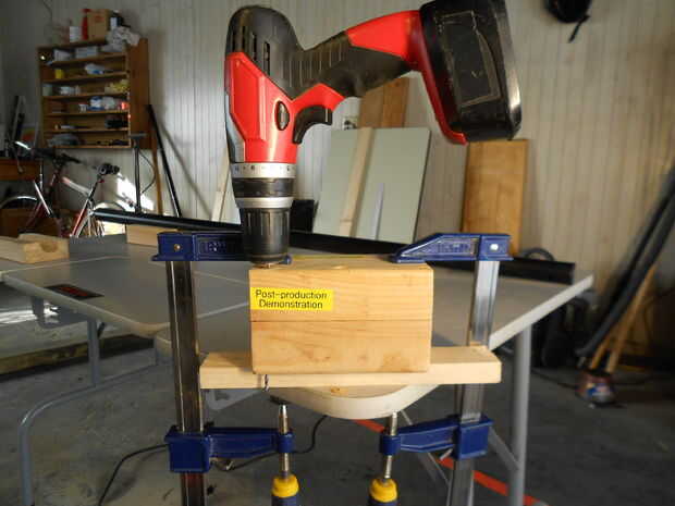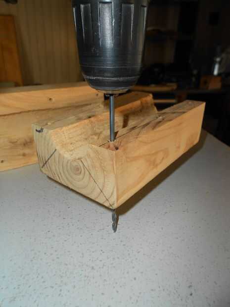 3. adhiera ambos 4 x 4 mitades con pinzas de madera y uso el 1/8 largo "broca para seguir la perforación acaba de hacer para completar la línea recta a través de ambos 4 x 4 de la abrazadera abrazadera de mitades.