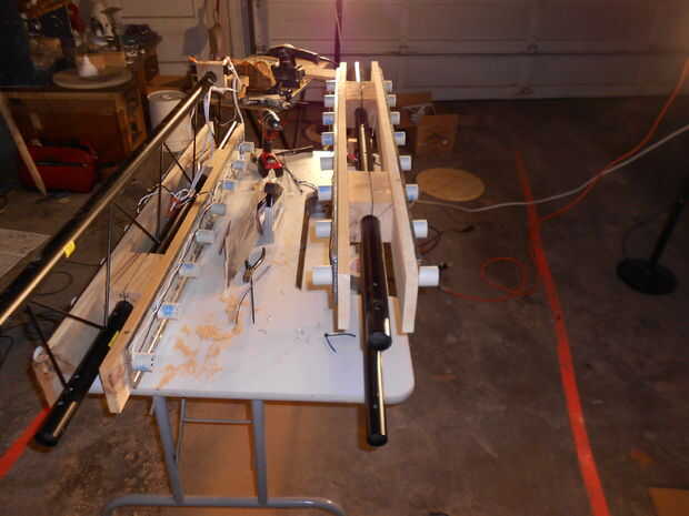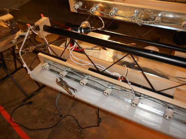 Corte extensiones domésticas para obtener cables con clavijas de enchufe. Utilice tuercas para alambre para unir los cables. Usted puede engrapadora algunos de parafina a las abrazaderas de 4 x 4; el resto a la estructura del braguero de la atadura de cables.