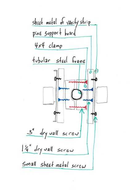 Centro y montar las barras de la vanidad. Usar tornillos de chapa de 2-4 por caja de luz.