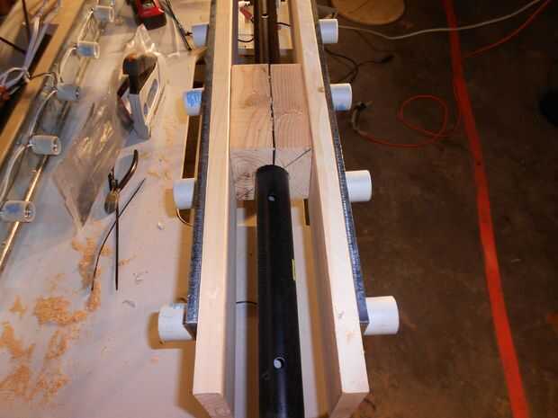 Centro y montar el tablero en las caras de dos abrazaderas de soporte. Utilice tornillos de drywall de 1 1/4". Biselado no es necesario para madera blanda. Se puede perforar cerca de la mitad de las pinzas por el espesor de los materiales.