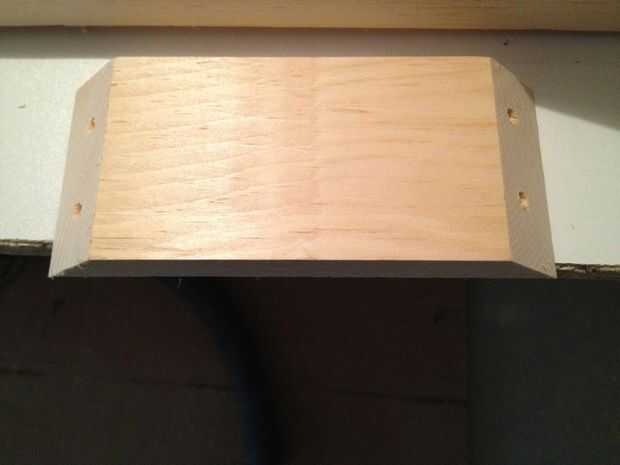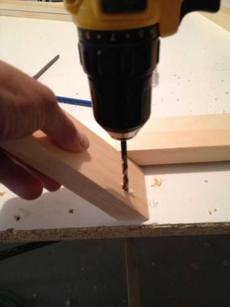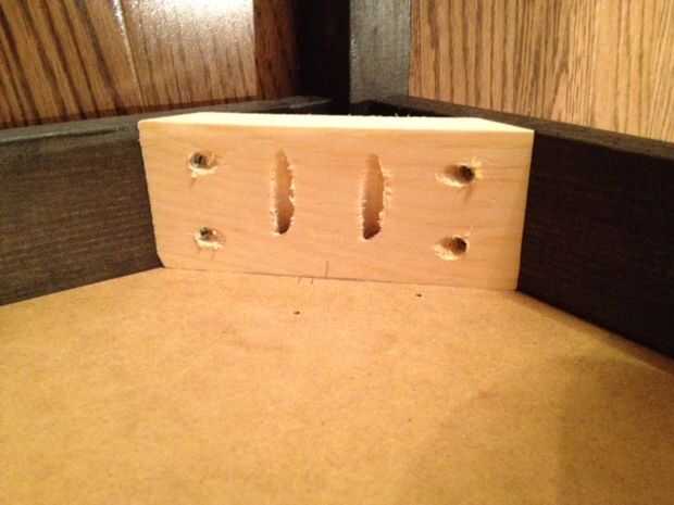 Cuatro agujeros fueron perforados en cada pieza. Estos agujeros se utilizan para atornillar los soportes de esquina en la falda superior de la tabla base.