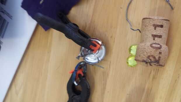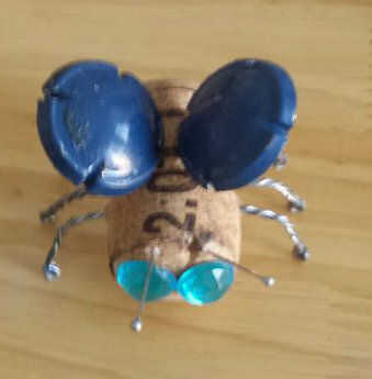 Cuando esté seco el pegamento ala recortar el alambre del ala a una longitud corta, sumergir en pegamento y empuje en los orificios de la parte posterior.