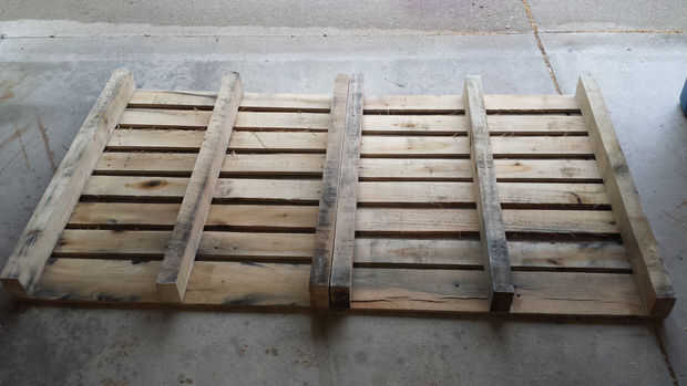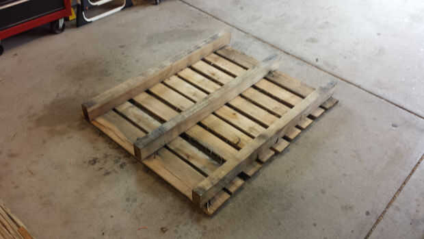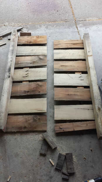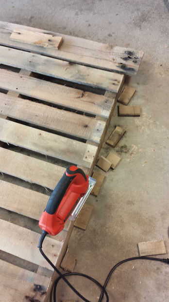 Comencé cortando las piezas de los tableros que traslapó los largueros alineación los dos palets que harían el frente de la barra. Por los lados que corte una plataforma en medio con un jig vieron luego cortan las tablas hasta el tamaño que quería (aproximadamente 18")