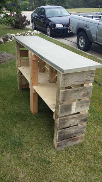 Estoy muy contento con cómo resultó el bar del patio y no cambiaría mucho al respecto (aunque podría añadir luces, un abridor de botellas y otras cosas diversión). El concreto está sujeto a la barra con su propio peso y la fricción, pero que parece ser suficiente (que no se mueva en absoluto).
