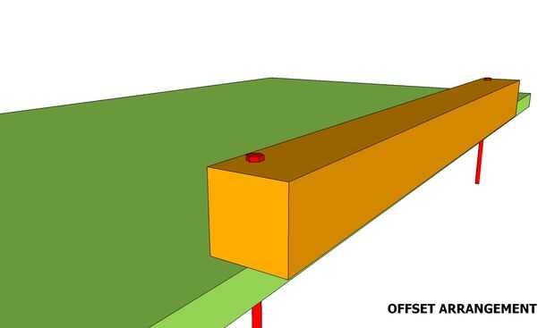 1. dos agujeros para M6 4" tornillos intencionalmente se mantienen más cercanos de un borde en lugar de en medio, intencionalmente. Esta compensación permite montar el tornillo de la barra de dos maneras: en primer lugar, al ras con el borde de la mesa de trabajo (flush BORDE); en segundo lugar, la mitad de la pulgada fuera del borde de la mesa de trabajo (compensación de borde).