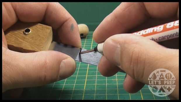 1. Utilicé mi pluma de carpinteros para trazar el contorno de la hoja en el interior del mango de una pieza