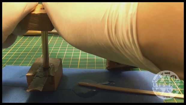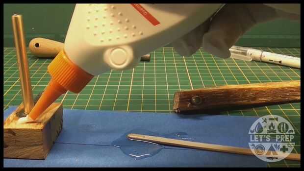 1. Después de limpiar exceso de epoxy del mango delantero apliqué algunos pegamento para madera y sujeta ambos manejar piezas juntos