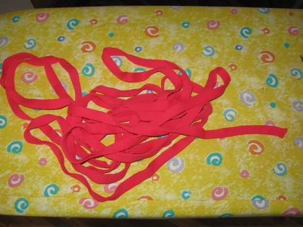 Cinta elástica o material (he encontrado varias yardas de noción previamente plegada de 5/8 de pulgada en color de rosa caliente)