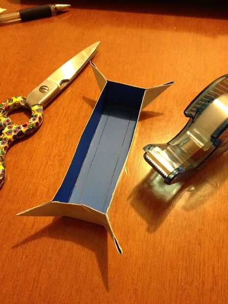 Uso de un cartón plastificado, dibujar la forma de la barra. Corte doblez y pegar para tener este resultado.
