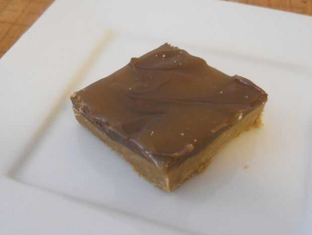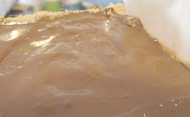 2. Vierta el chocolate derretido sobre la mezcla de mantequilla de maní y espárcelo de forma pareja