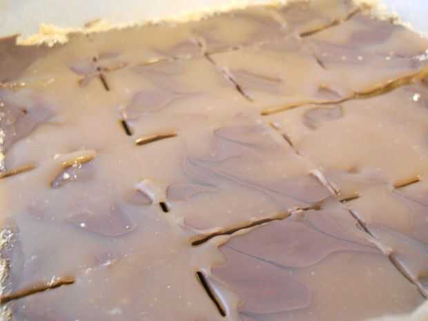 4. Tire suavemente de la punta de un cuchillo a través del caramelo y chocolate para combinarlos un poco