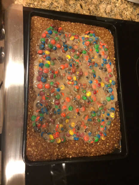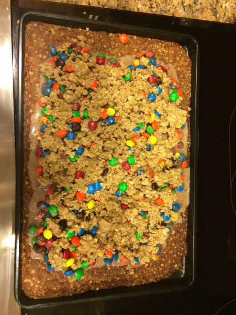 Tomar la avena grumosa restante y mezclar con la izquierda sobre M & M