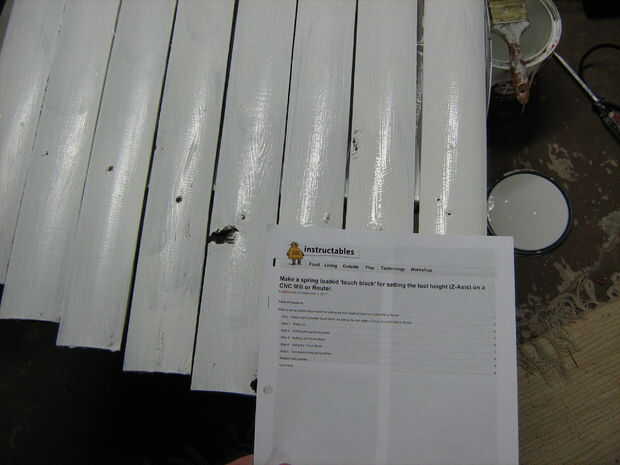 Si la valla nunca haya tenido una capa de pintura, o la pintura es realmente mala, puede que desee poner poco restos de pintura en las barras como una "cartilla" de la guía para que usted no pasan tan rápido por la pintura naranja. Tenía un cuarto lata de sobra pintura exterior blanca que utilicé para una cartilla. Muchos centros de hogar también venden "oops" pintura por unos pocos dólares. Por lo que se podría recoger un cuarto de galón de exterior hay demasiado en el barato. Si está cebado la cerca con los niños, te recomiendo saltar hasta el